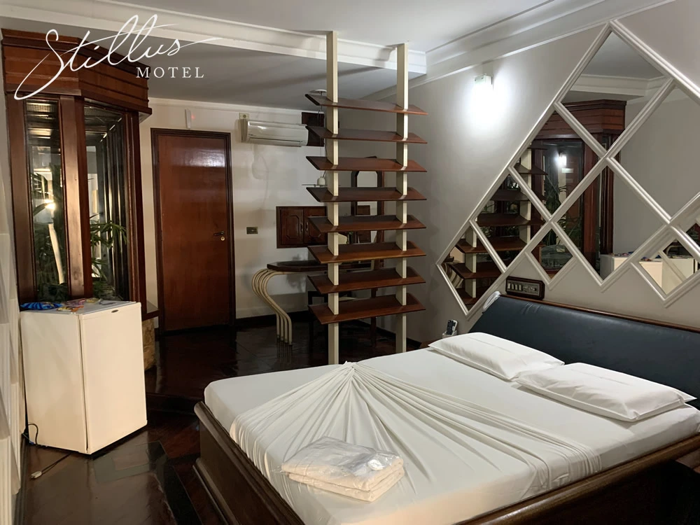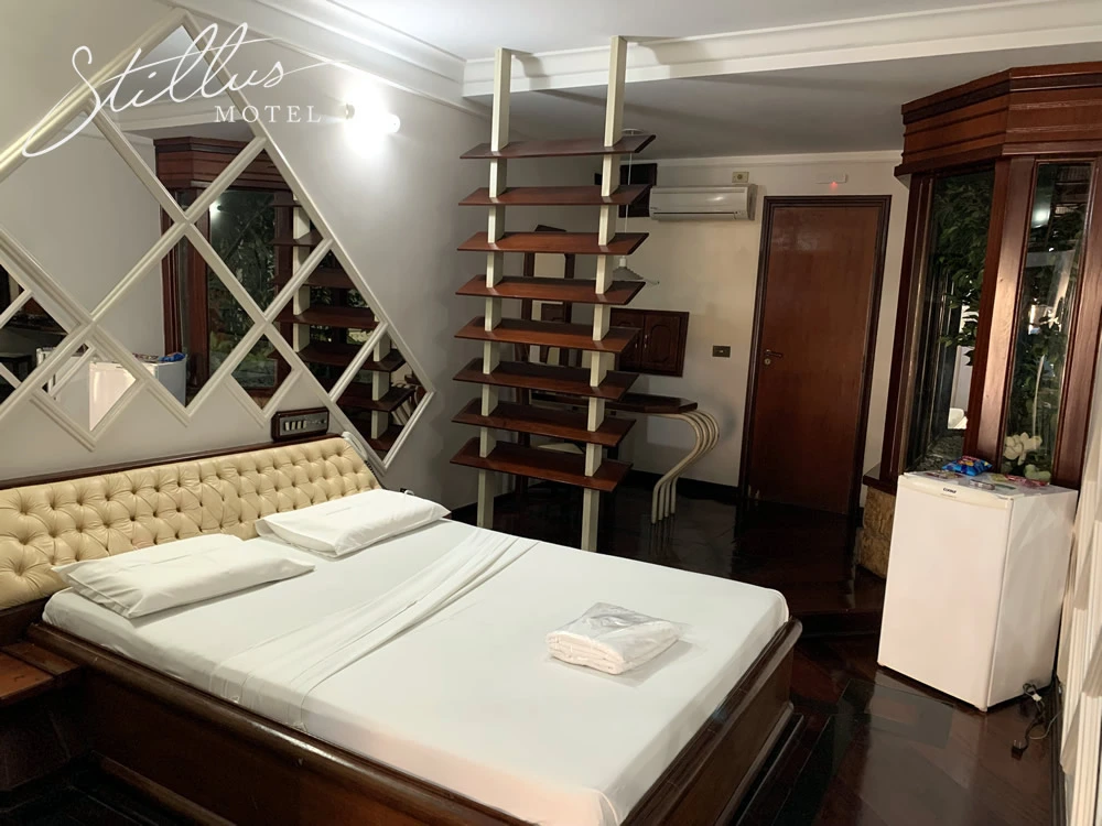 Cama Queen size / Ar condicionado – quente e frio / Salal de jantar / Decoração personalizada / Jardim de inverno / Frigobar / Banheiro com ducha / TV – convencional e privativa / Som ambiente